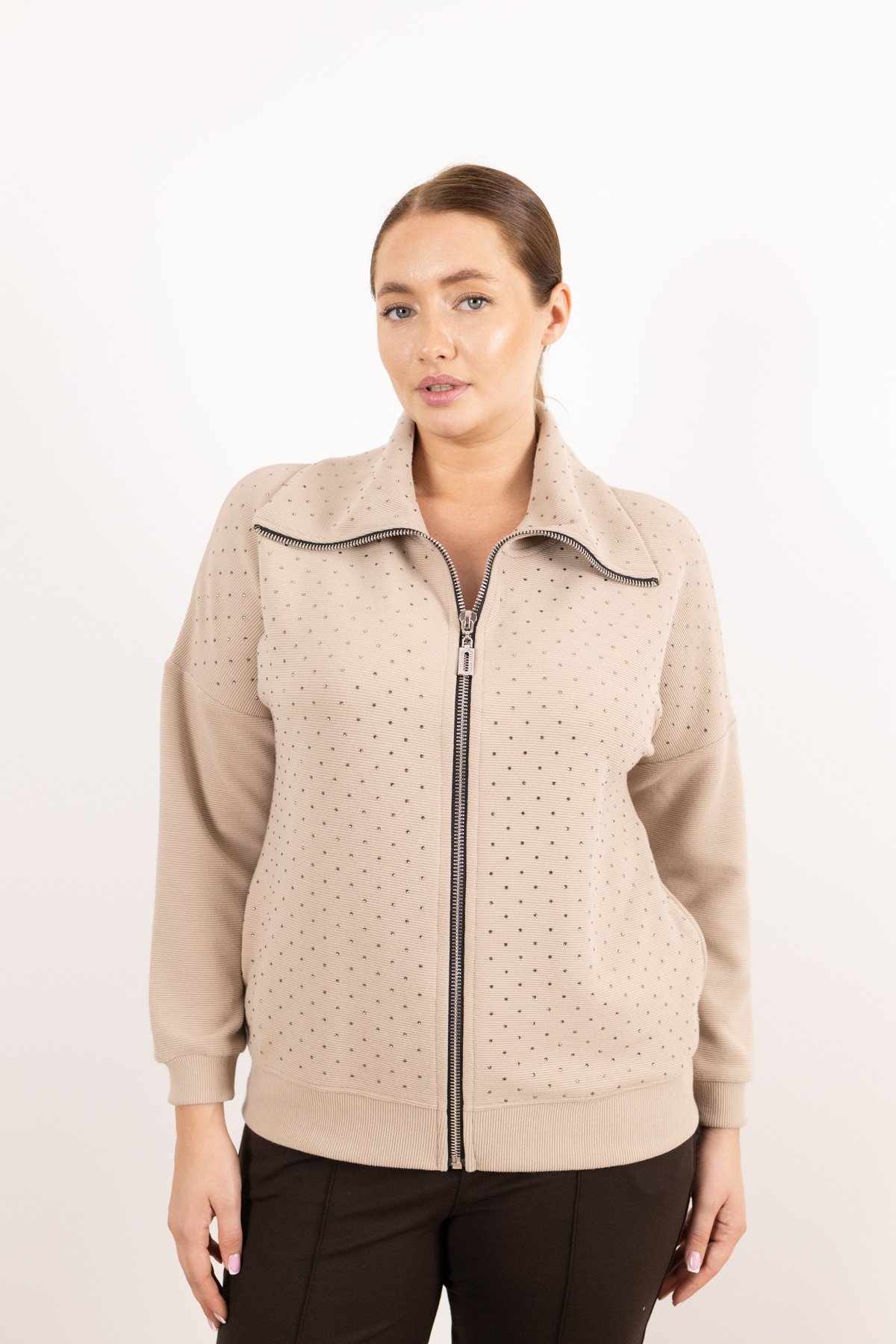 Balıkçı Yaka Detaylı Fermuarlı Taş Baskılı Hırka (35K6HRK0504224)