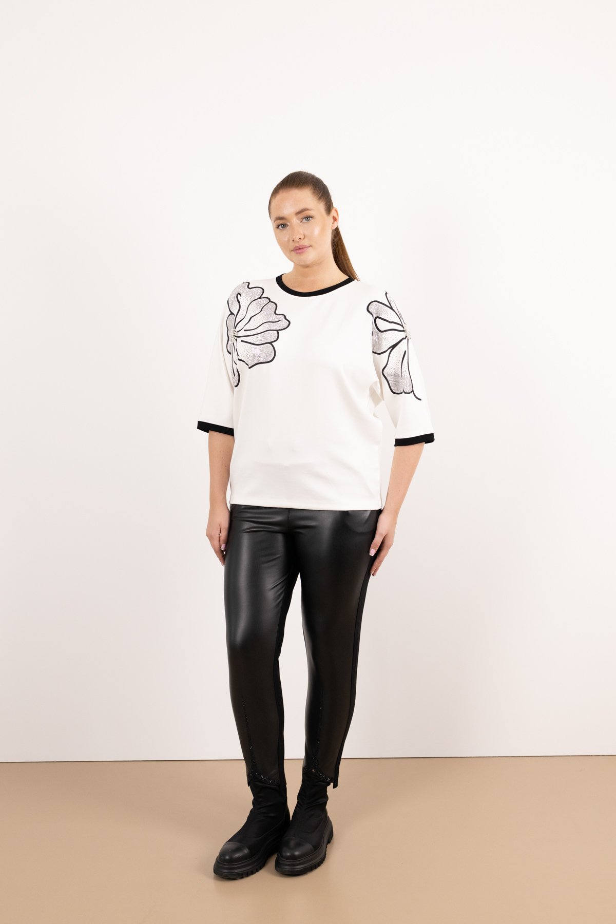 Bel Bağlama Detay Paça Taş Baskılı Deri Ekleme Pantolon