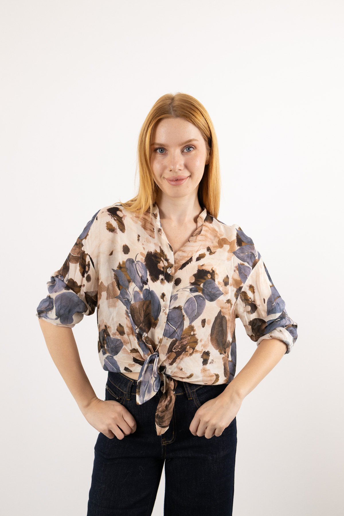 Bel Bağlama Detaylı Yaprak Desenli Gömlek