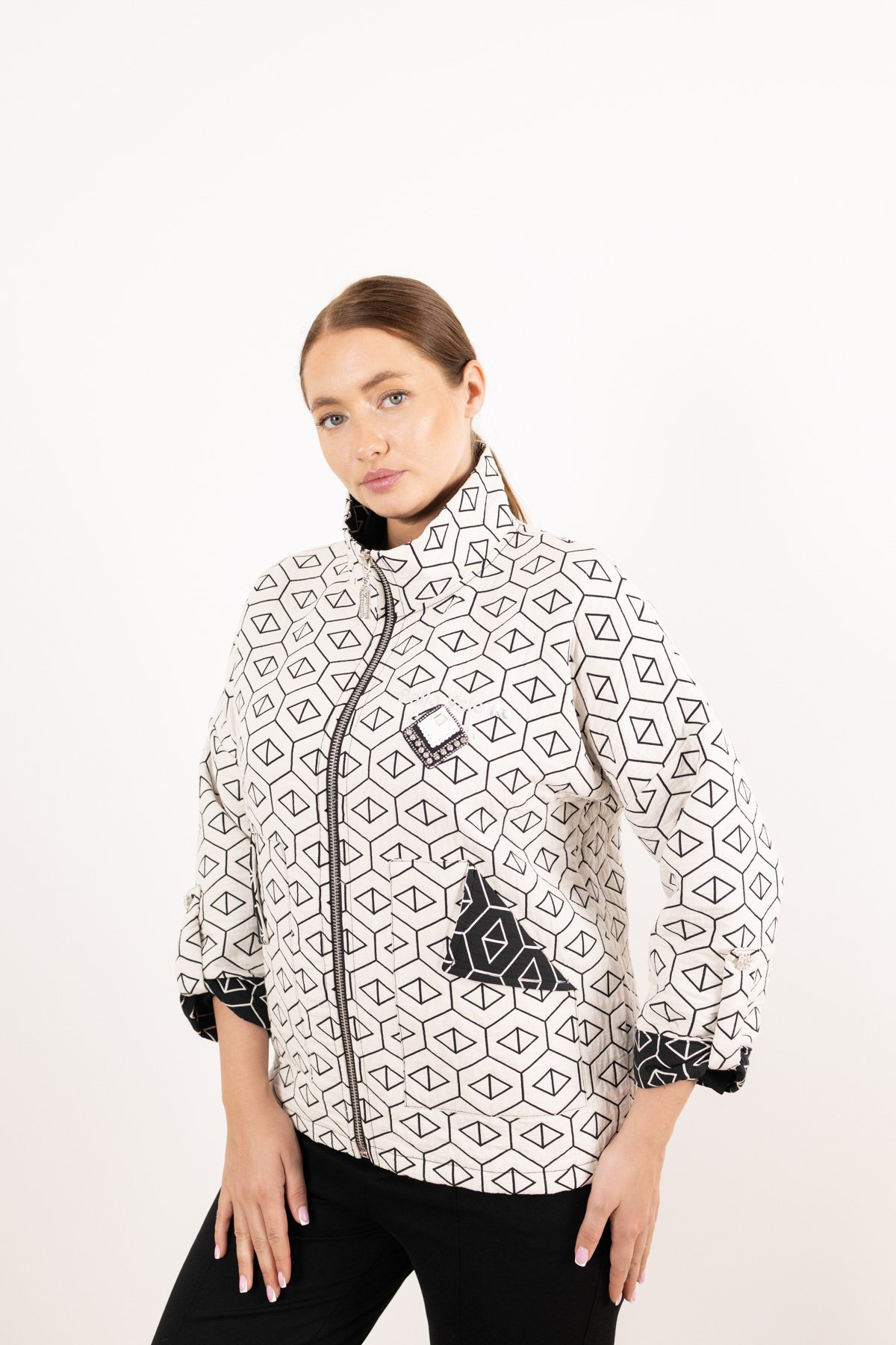 Beşgen Desen Detaylı Cepli Taş Baskılı Ceket