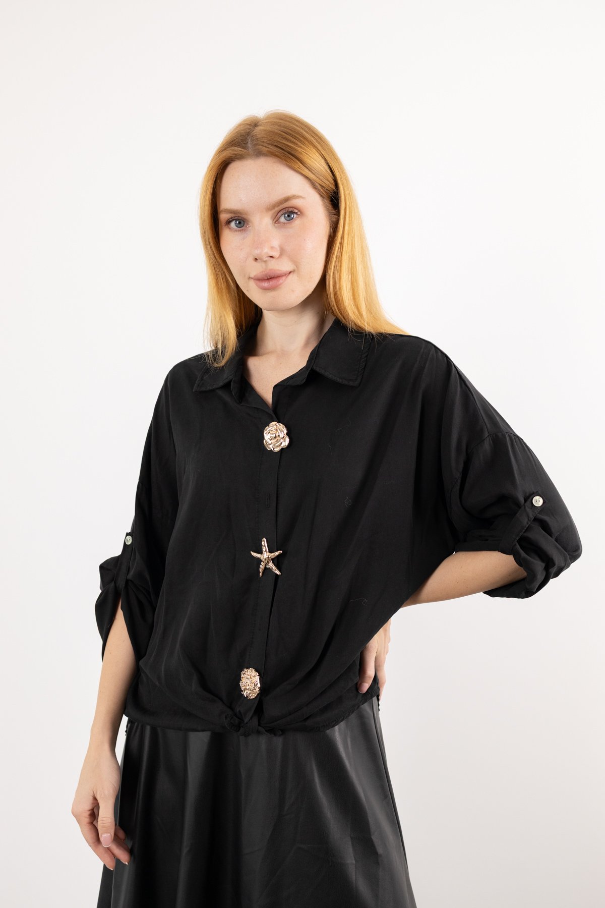 Düğme Detaylı Beli Bağlamalı Uzun Gömlek