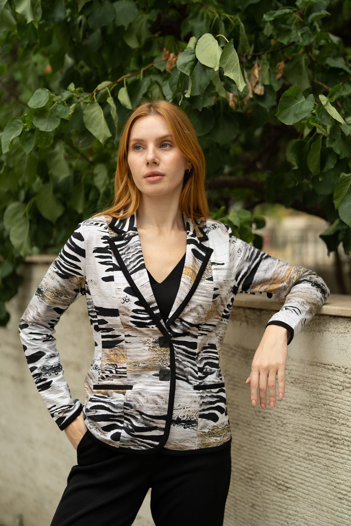 Düğme Detaylı Desenli Cepli Örme Ceket