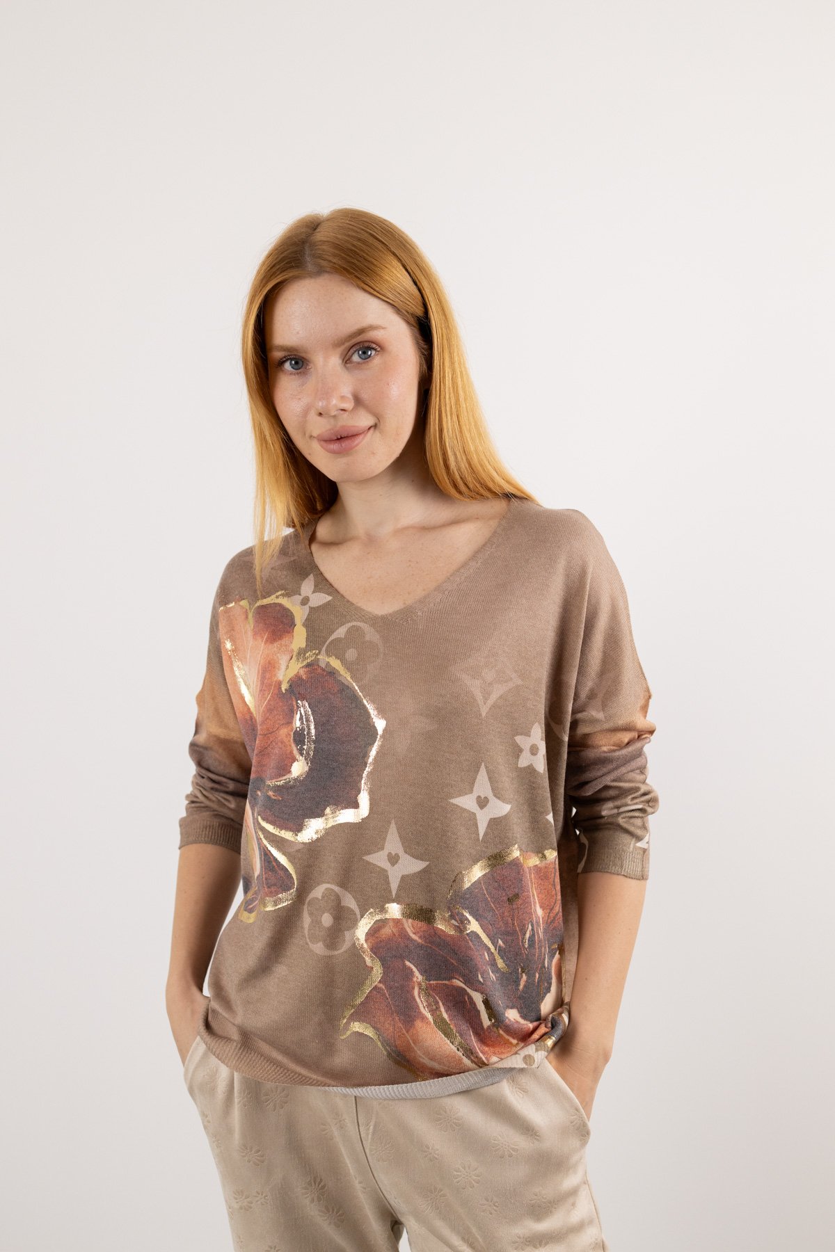 Kalp Ve Yıldız Basklılı Çiçek Desenli Kazak (17K6KKZ0780114)