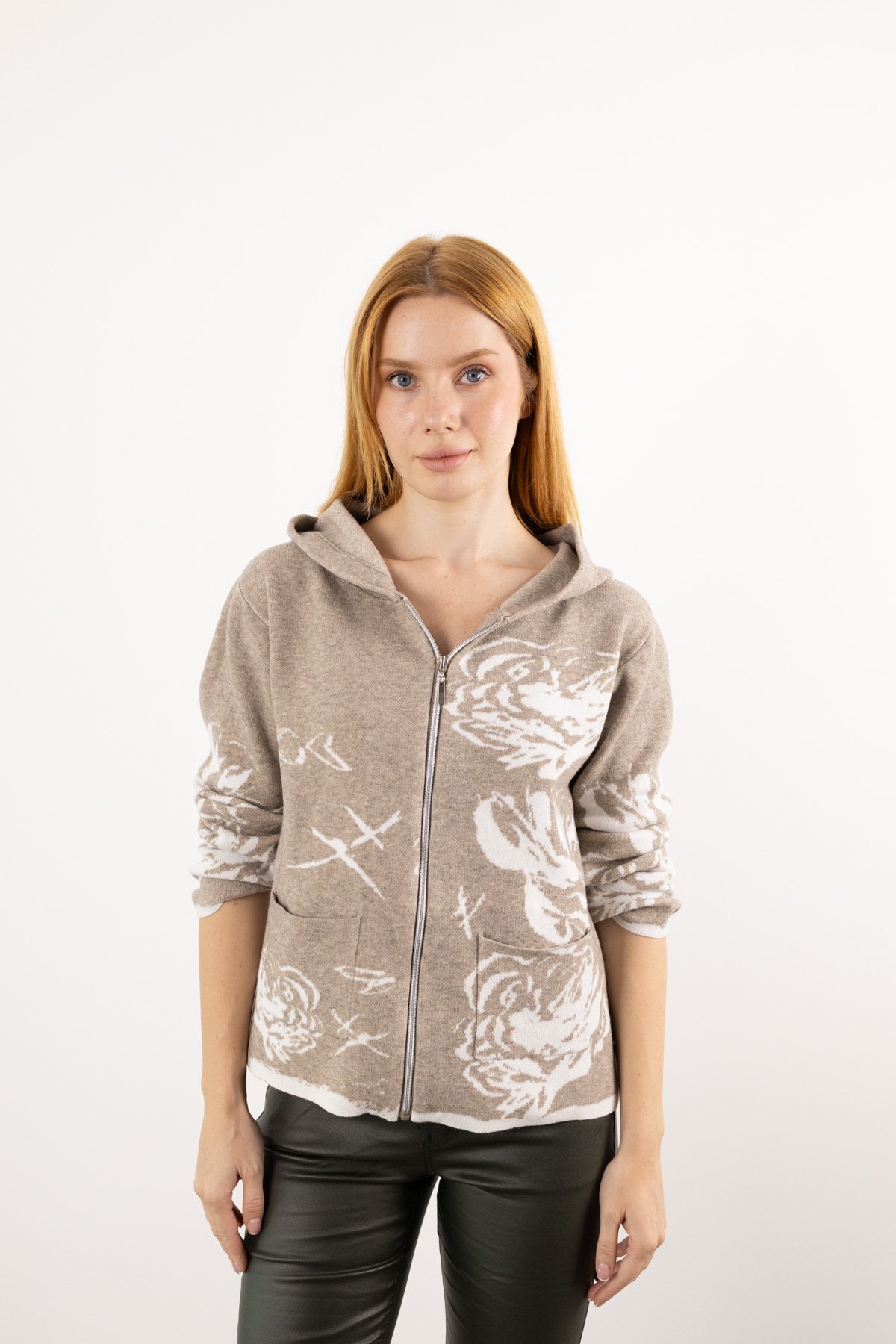 Kapüşon Detaylı Cepli İki Renkli Hırka
