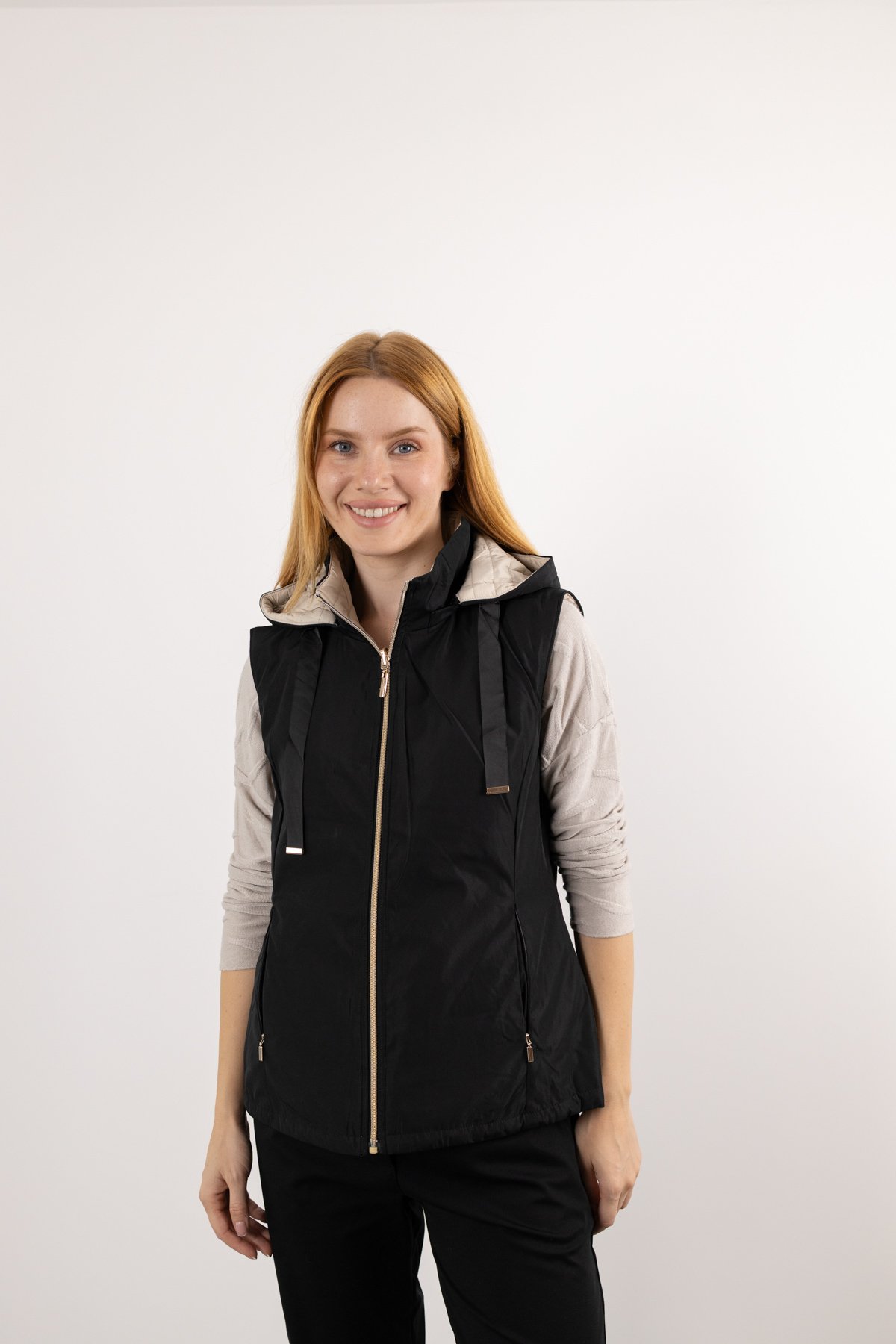 Kapüşon Detaylı Sıfır Kollu Çift Taraflı Yelek