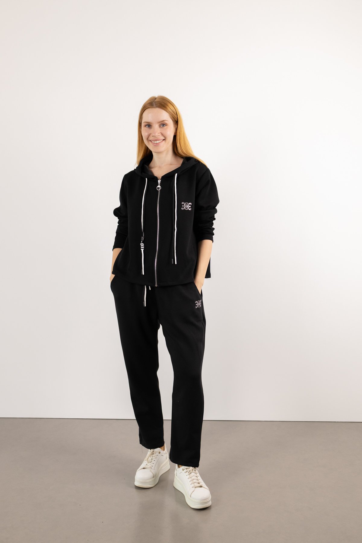 Kapüşon Detaylı Taş Baskılı Pantolon Hırka Takım