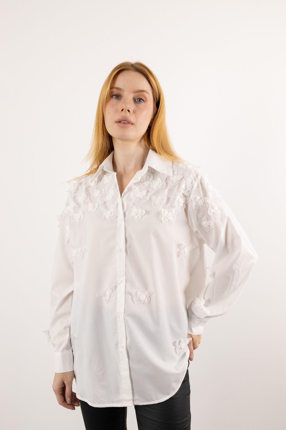 Kelebek Motif İşleme Detay Gömlek (17K6GML6256802)