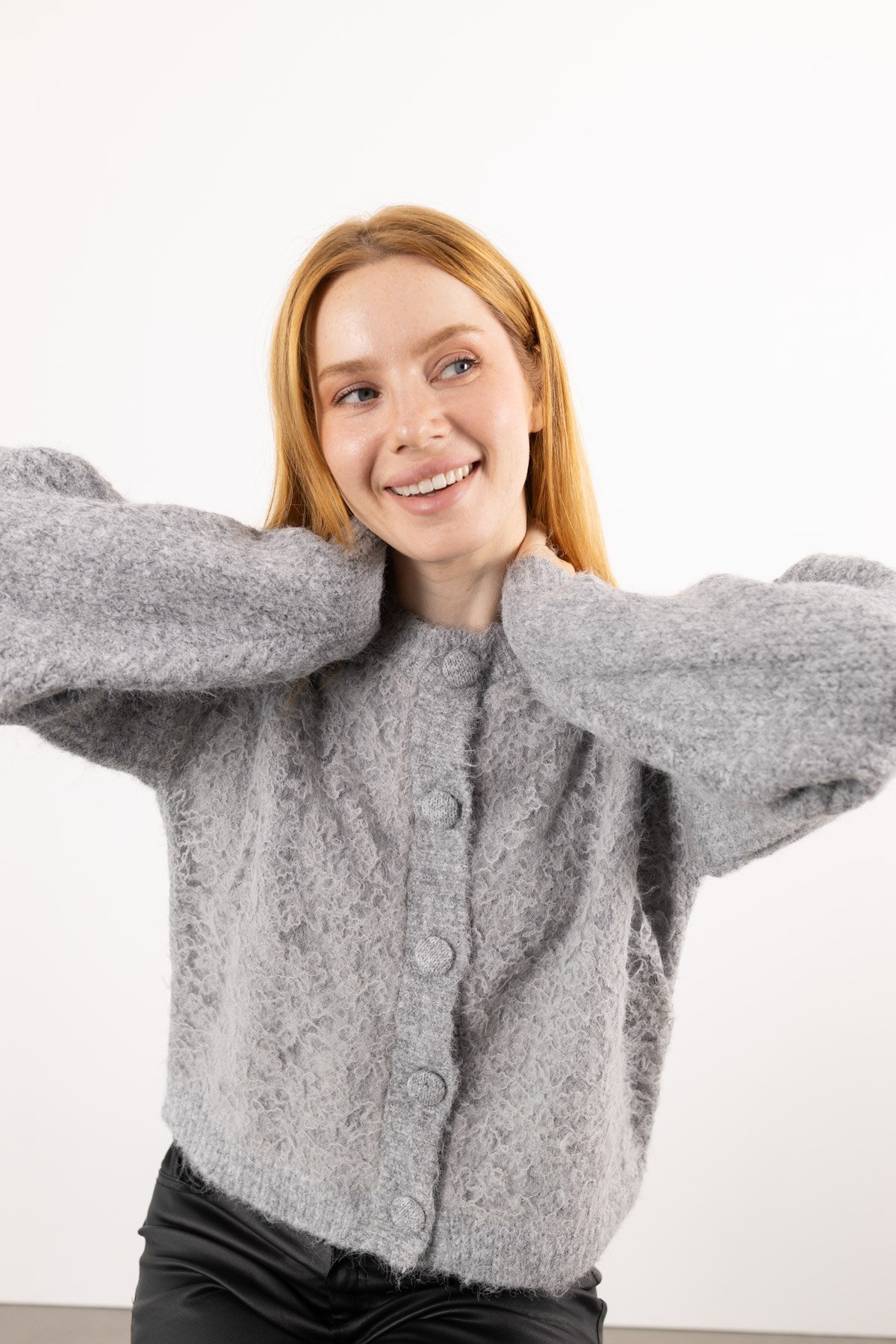 Ön Düğmeli Bisiklet Yaka Hırka (17K6HRK1558304)