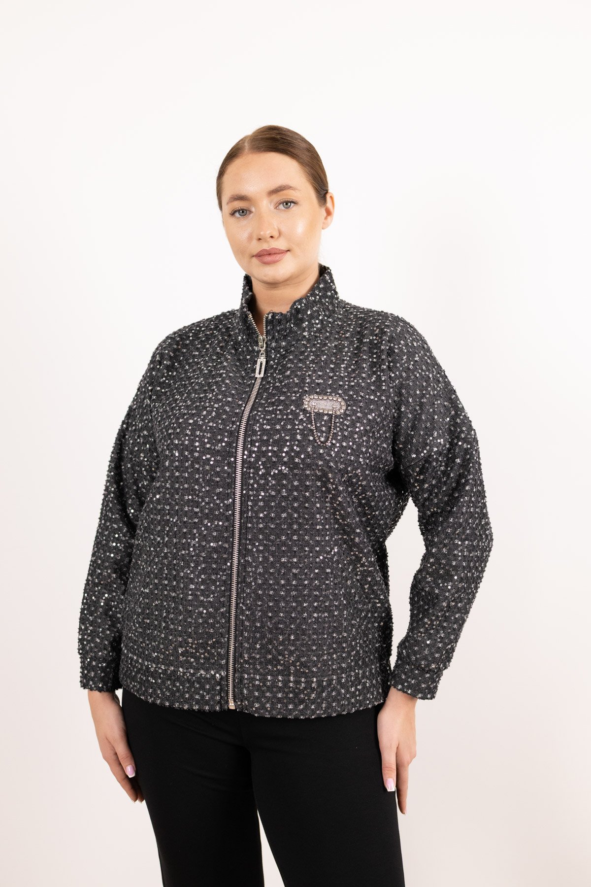 Pul Payet Baskı Ve Taş Detaylı Uzun Kollu Ceket