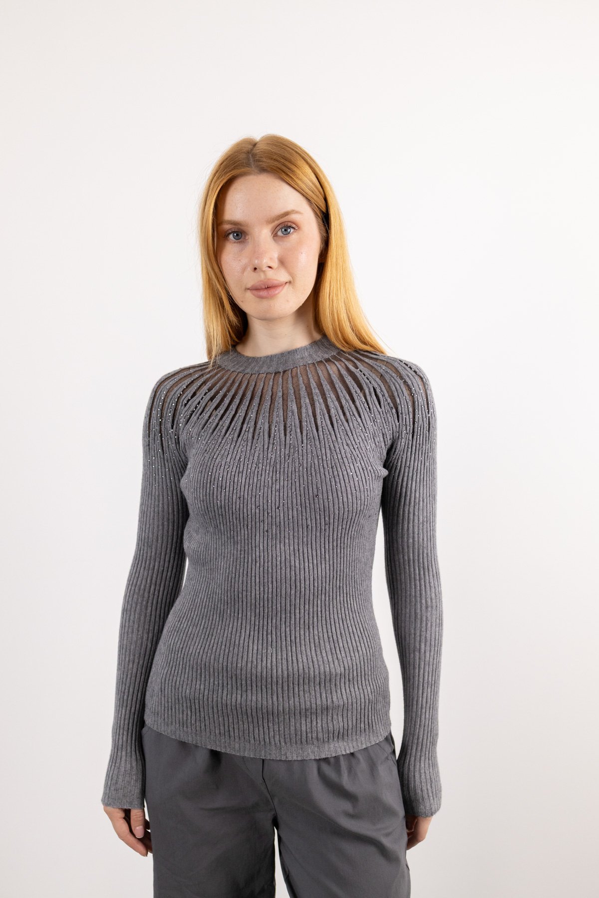 Taş İşleme Detay Bisiklet Yaka Kazak (17K6KZK0023104)