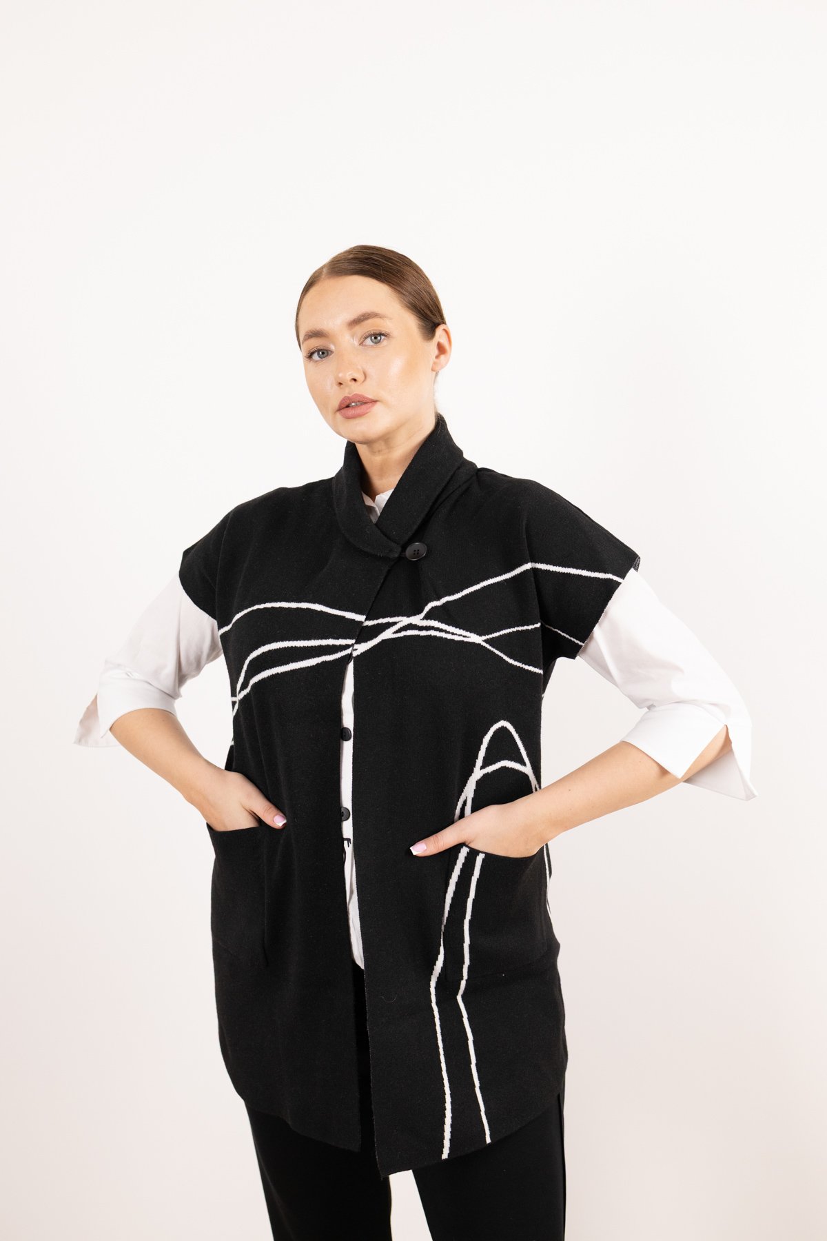 Tek Düğme Detay Kısa Kollu Çizgi Desenli Hırka