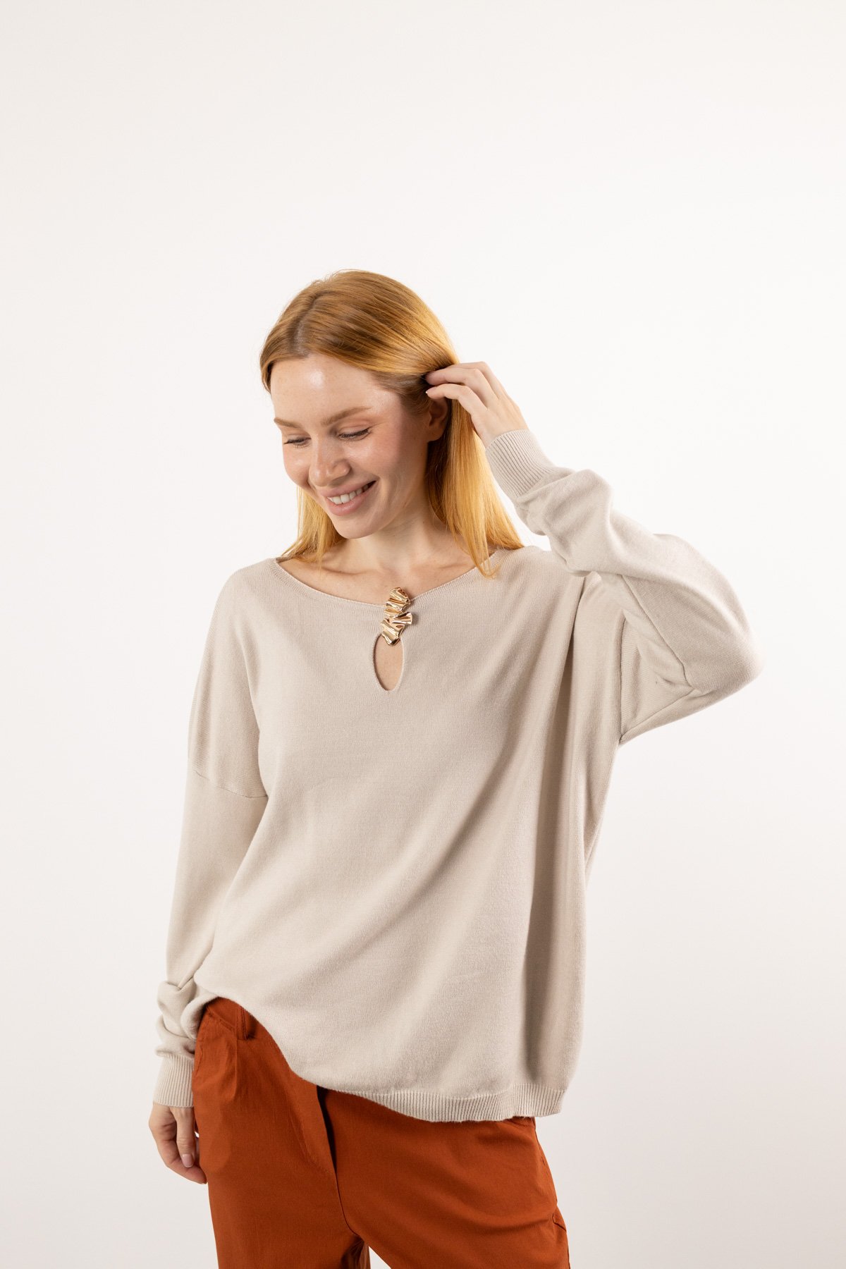 Toka Detaylı Uzun Kollu Triko Kazak