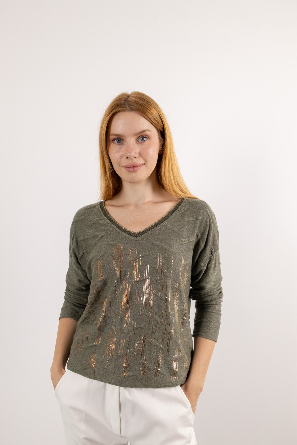 V Yaka Detaylı Uzun Kolu Kabartma Ve Desenli Kazak