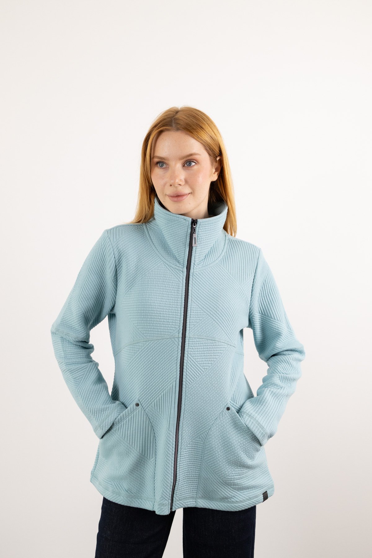 Yaka Detaylı Fermuarlı Cepli Şerit Desenl Örme Ceket